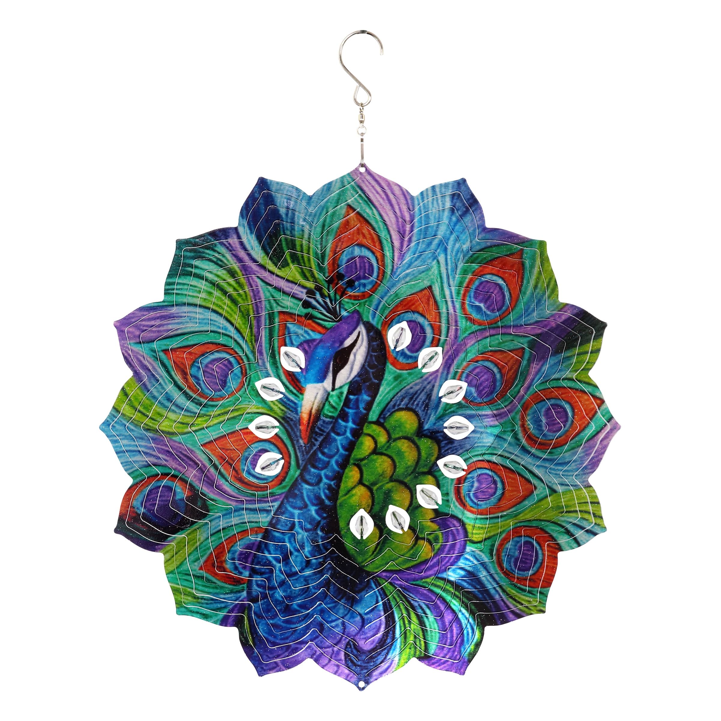 Exhart Laser Cut Peacock Hanging Wind Spinner With Bead Details 12 Inch Metal Multicolor Walmart Com